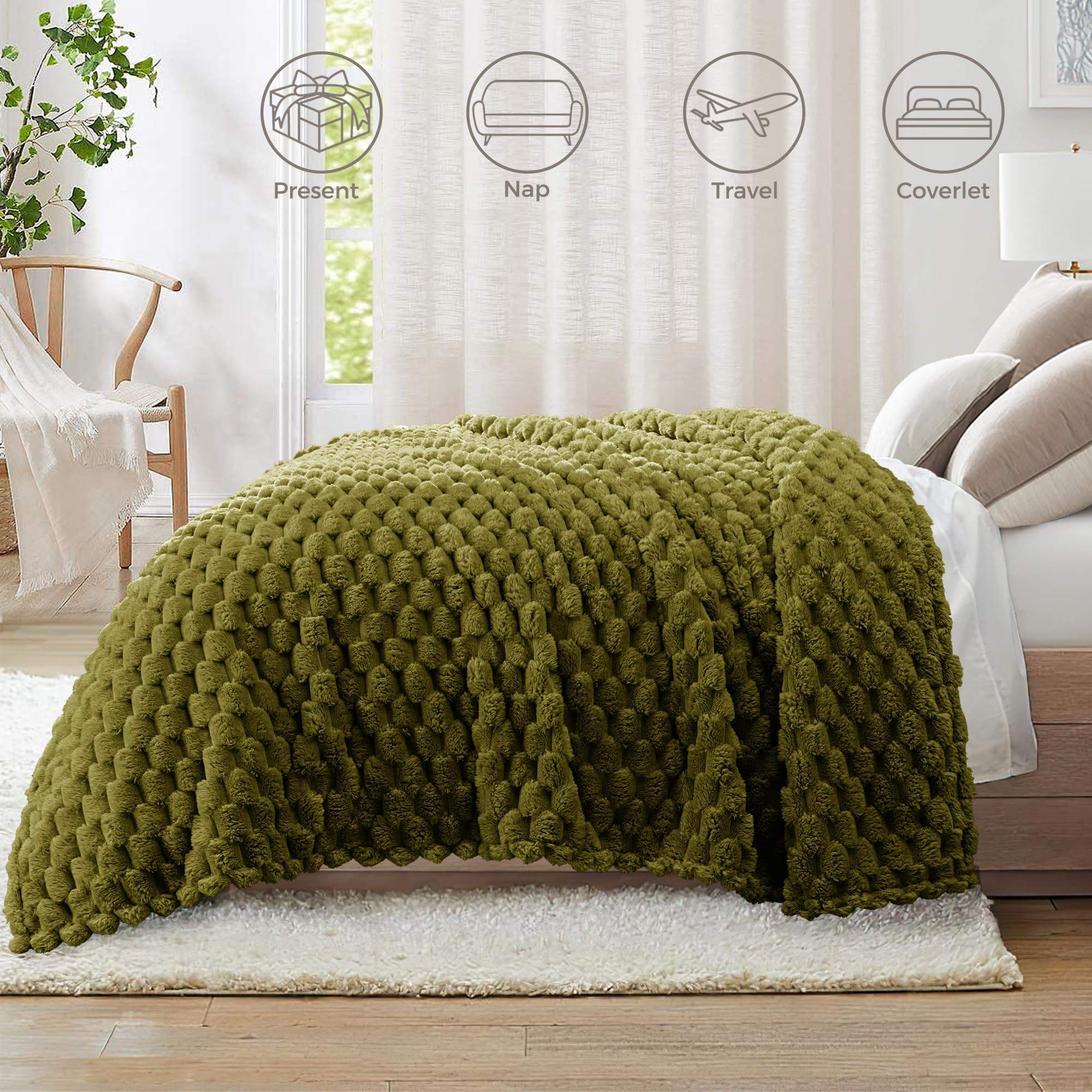 These fuzzy blankets offer a dense, fluffy texture. Combining 3D striped texture with fluffy fleece ensures warmth while also being lightweight and breathable.