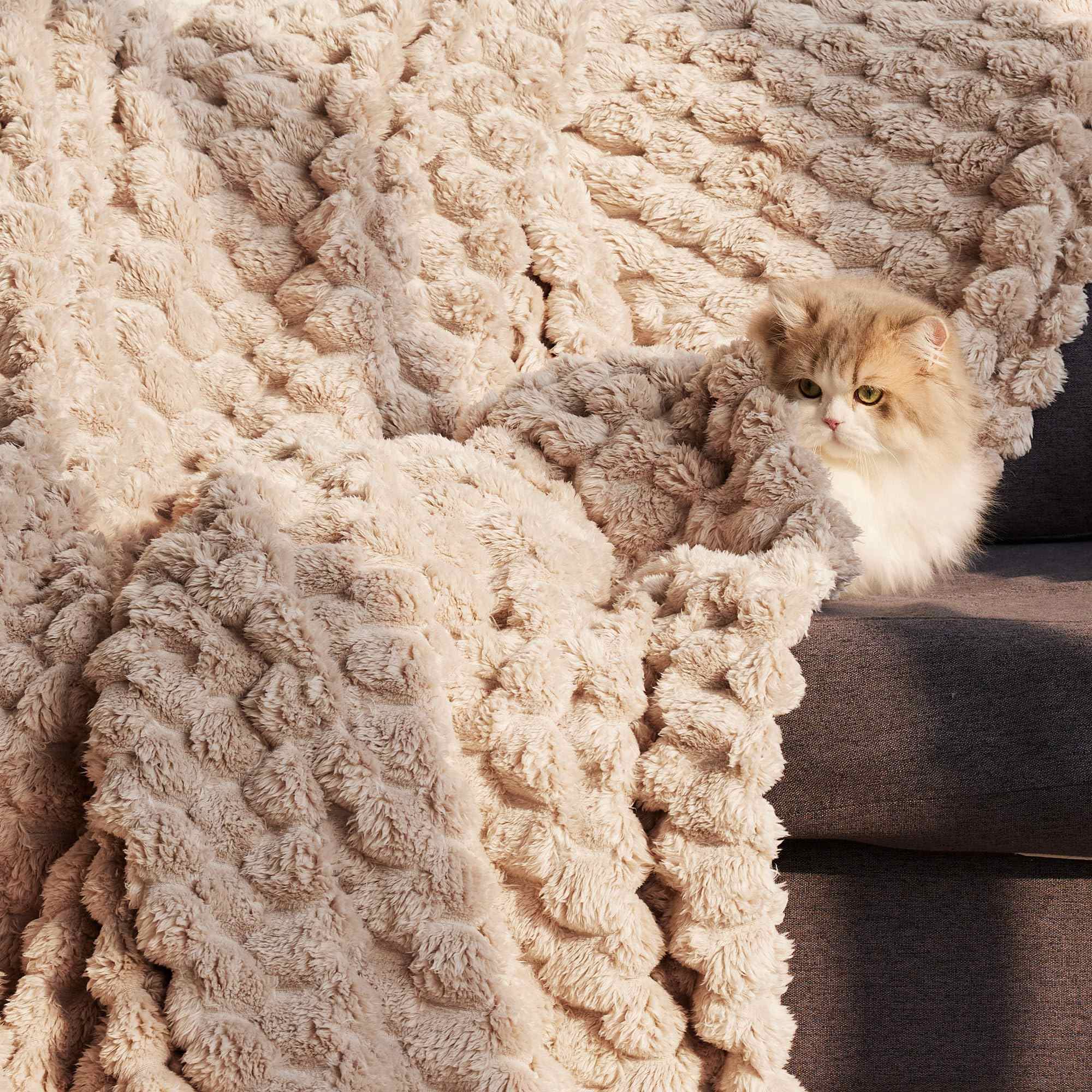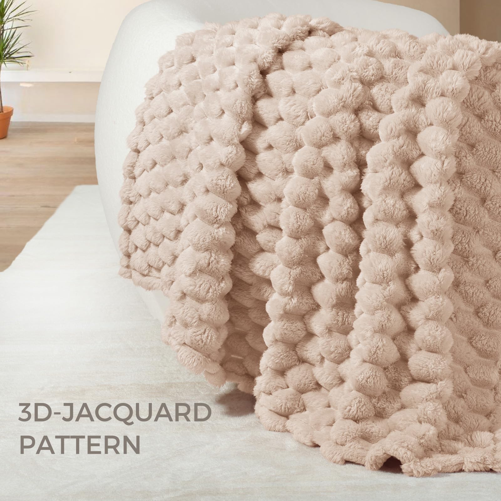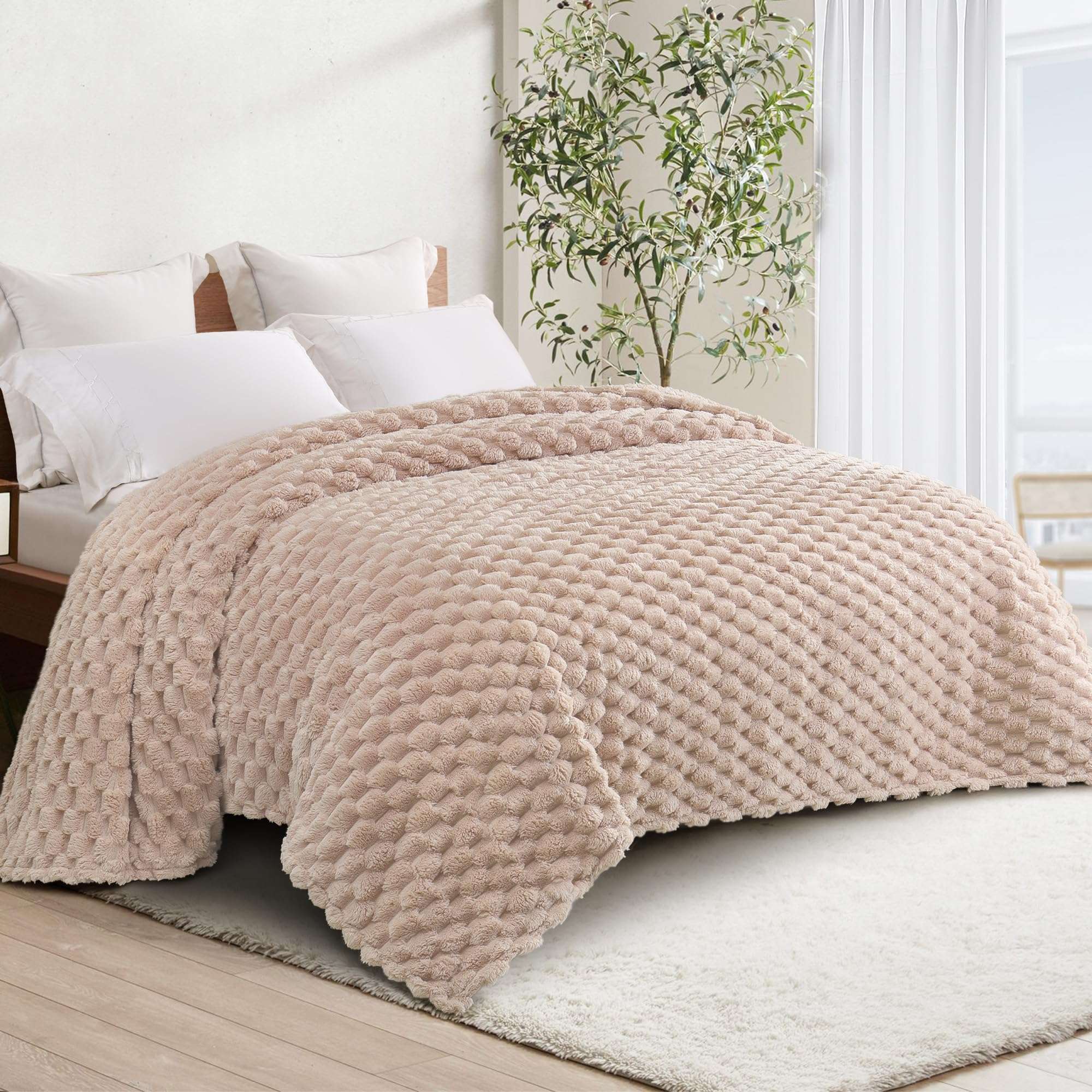 These fuzzy blankets offer a dense, fluffy texture. Combining 3D striped texture with fluffy fleece ensures warmth while also being lightweight and breathable.