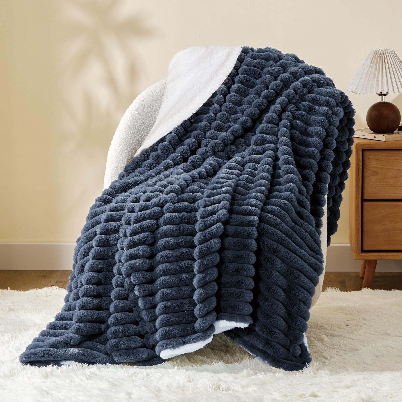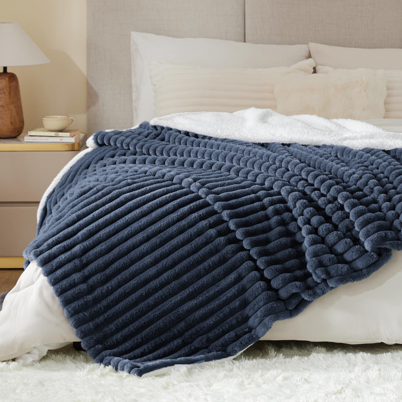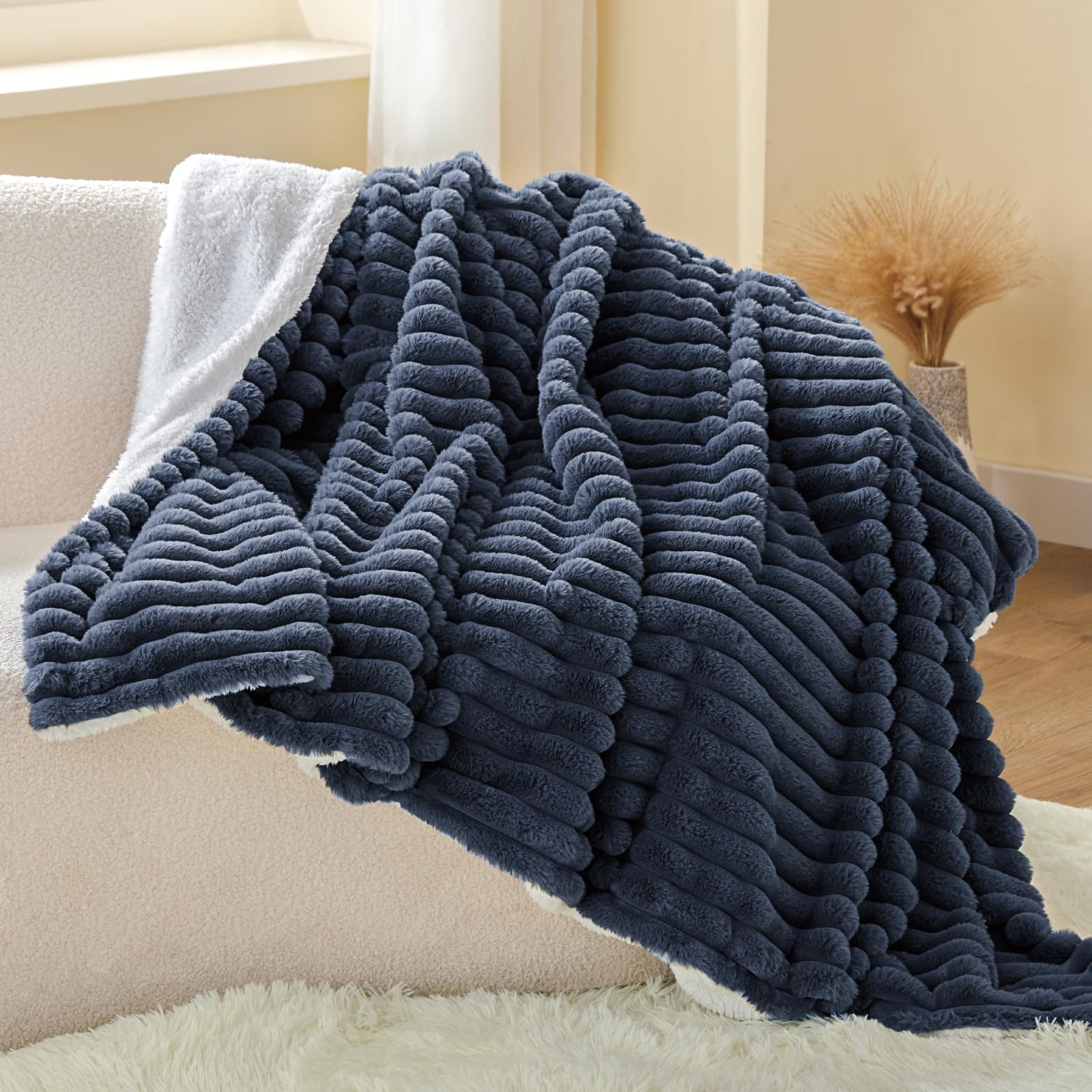 These fuzzy blankets offer a dense, fluffy texture. Combining 3D striped texture with fluffy fleece ensures warmth while also being lightweight and breathable.