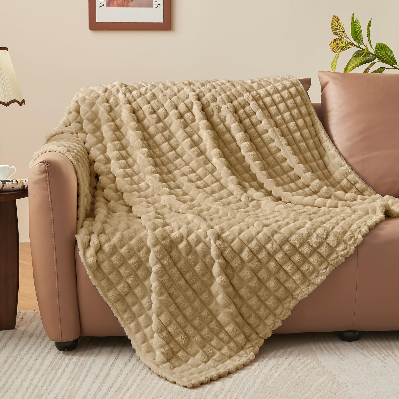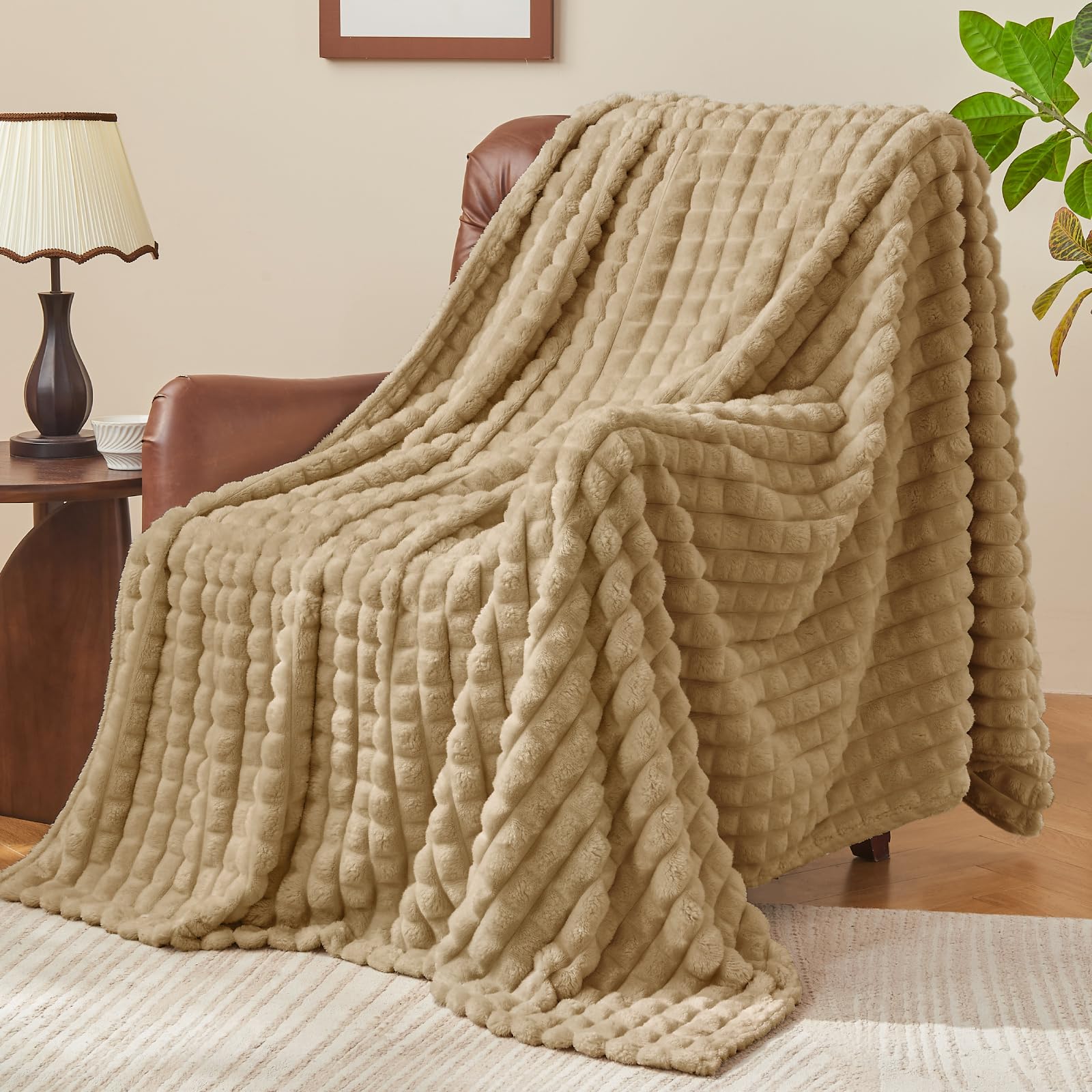 These fuzzy blankets offer a dense, fluffy texture. Combining 3D striped texture with fluffy fleece ensures warmth while also being lightweight and breathable.