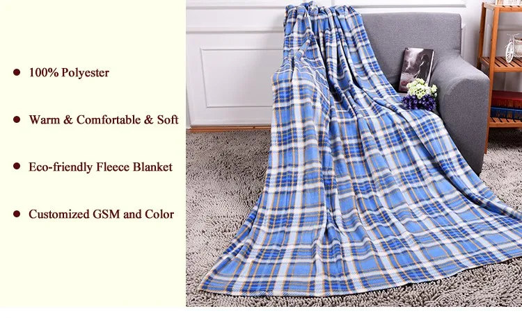 100% polyester plain style and disposable feature softtextile plaid polar fleece blanket