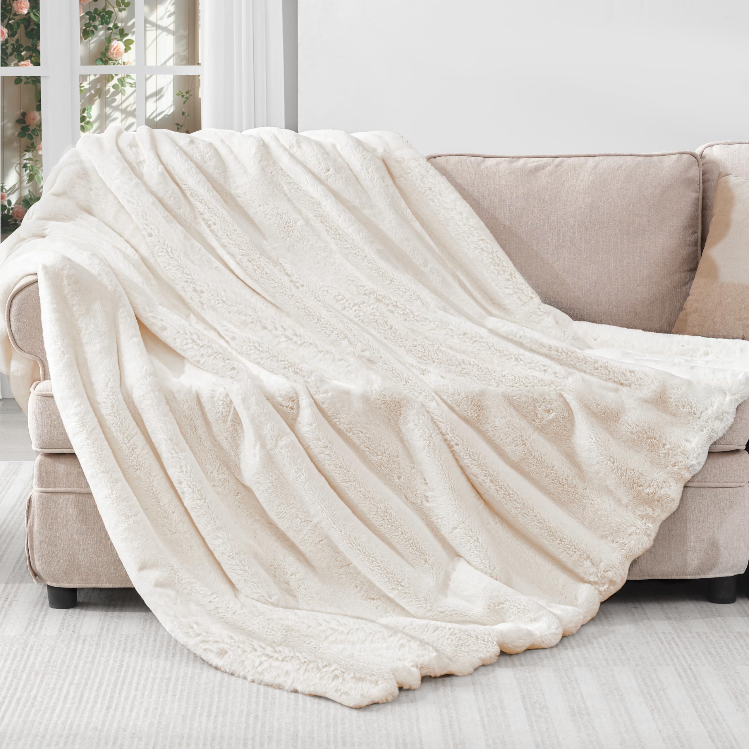 The fine fluff offers a cloud-like touch, lightweight yet warm, suitable for covering sofas, beds, or as a baby swaddle. The simple design with gentle colors adds a touch of comfort and elegance to home decor.